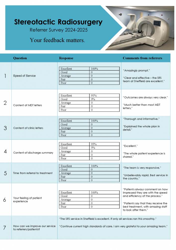 Our Stereotactic Radiosurgery multi-disciplinary team, which includes our Neurosurgical Consultants, Oncologist, Neuro Radiologists, Physicists and Specialist Radiographers, would be happy to provide their expert opinion for patients you consider might benefit from Gamma Knife Radiosurgery.